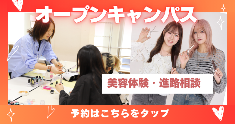 学校内の雰囲気を見てみたい、プロの技術を目の前で見たいという方にぴったり!ぜひオープンキャンパスにお越しください!
