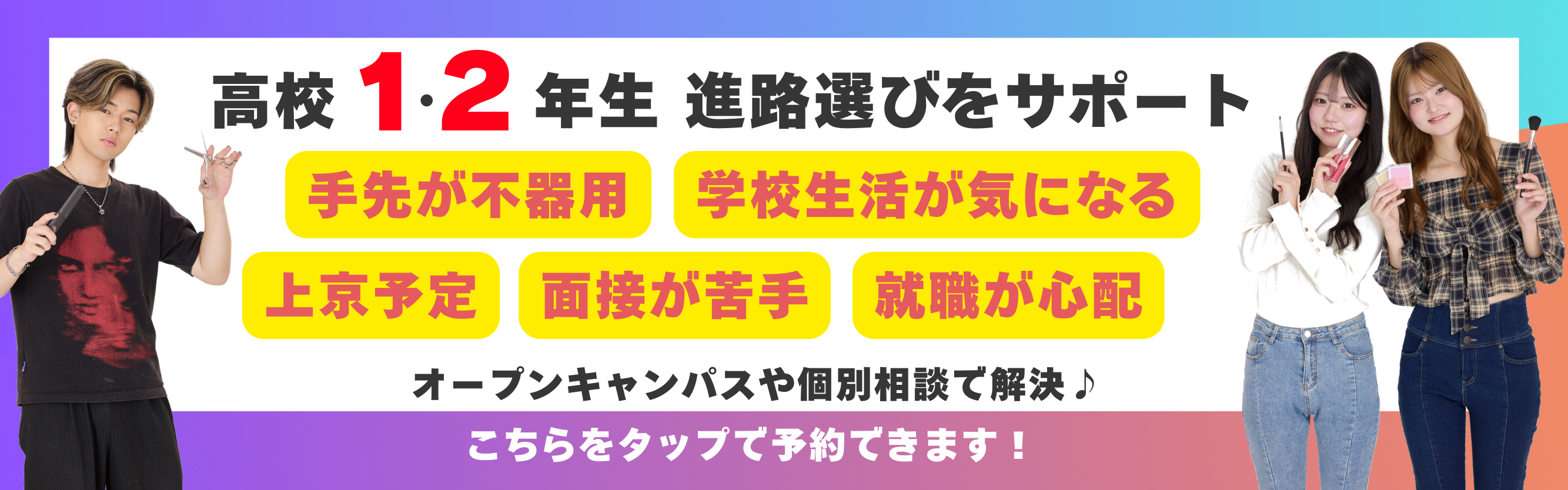 - 高校3年生/高校2年生/高校1年生/留学生/再進学をお持ちの方